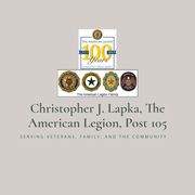 Christopher J. Lapka, Post 105 is dedicated to its efforts in helping our veterans, family members, and the community! We have a dedicated Service Officer who helps veterans and their families with Veteran Affairs (VA) and other claims, and a Chaplain who assists members with their spiritual needs. Elected Officers from the Legion, Sons, Riders, and Auxilary who serve our veterans proudly.